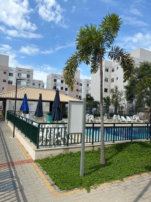 O condomínio possui área de lazer, como quadra, piscina e área com churrasqueira.